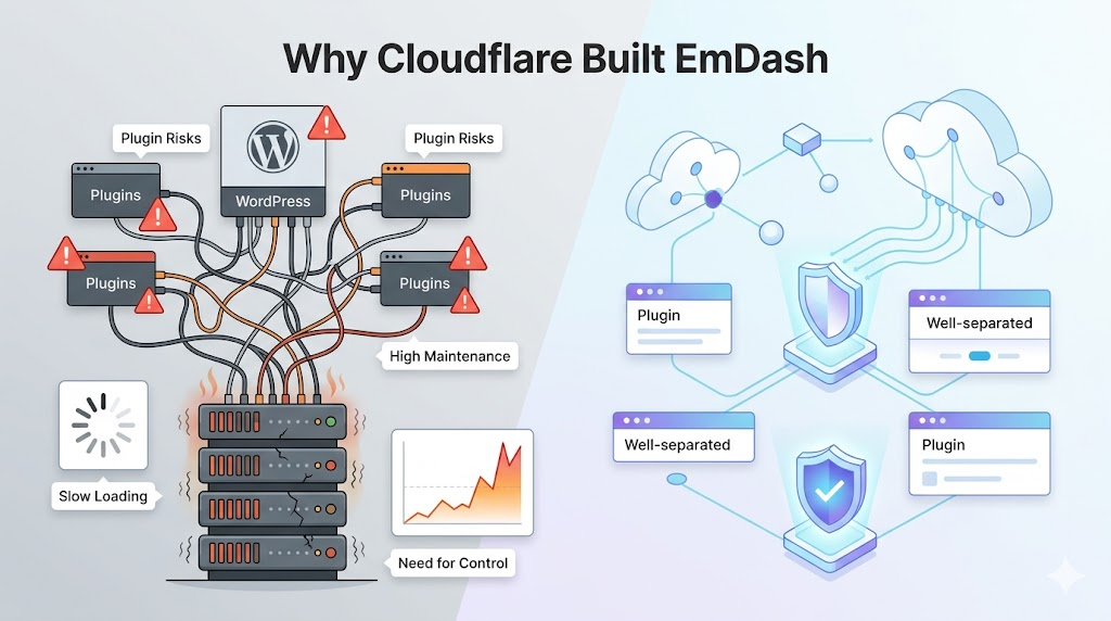 Cloudflare did not build EmDash just to create another CMS. It comes from years of observing how sites break, slow down, or get exposed when running on WordPress. The goal is simple: reduce risk, cut overhead, and give developers more control without adding complexity.