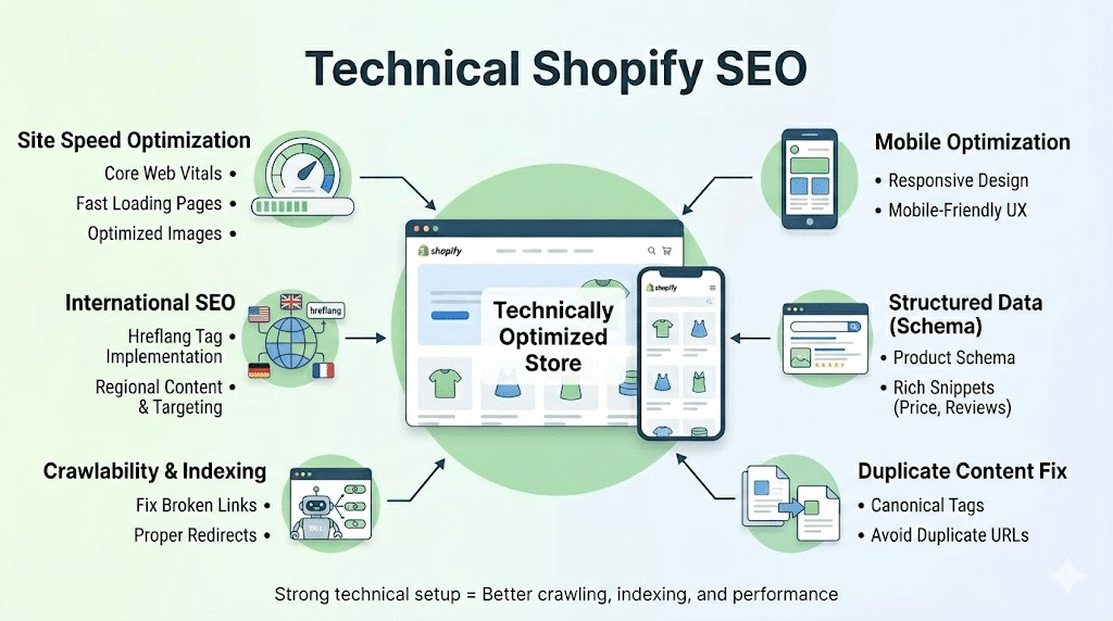 Many Shopify stores ignore technical SEO, and that is where problems start. Even well-written pages will struggle if the site is slow, hard to crawl, or poorly structured behind the scenes.