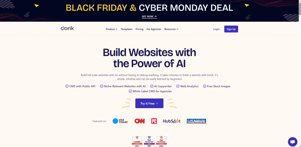 Dorik is a no-code website builder that gives you a clean, visual interface and many templates. With simple drag-and-drop controls, it helps you build responsive sites, blogs or business pages without writing code. You can also embed data from tools like Airtable to power dynamic pages.